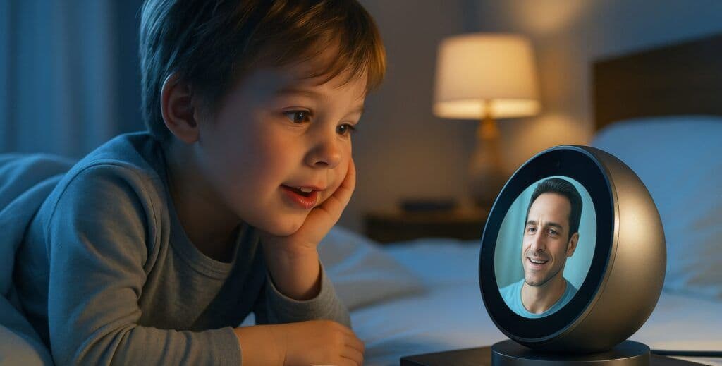The 2Wai promo opens with a pregnant woman video-calling her mother for pregnancy advice. Heartwarming, until you realize the mother is dead…she’s an AI recreation. The ad then jumps forward through time: the AI grandmother reads bedtime stories to her newborn grandson, gives him advice about his middle school crush, and eventually counsels him as an adult when he becomes a father himself.